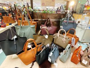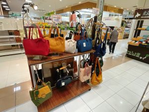 今回は北海道物産展と合同開催です。広いセンターコートを2社で所狭しと展開しています。新年に合わせて財布を新調されるも良し、来月から開催されるさっぽろ雪まつりの気分に合わせて、美味しいスーツを買うも良し、の非常にワクワクする城陽店のセンターコートですので、近隣のお客様のご来店を販売員一同お待ちしています。